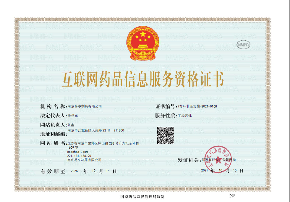 公司本網(wǎng)通過互聯(lián)網(wǎng)藥品信息服務資格認證